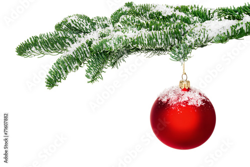Christbaumkugel Hängt Am Verschneiten Zweig Wall Mural | Wallpaper Murals-Smileus