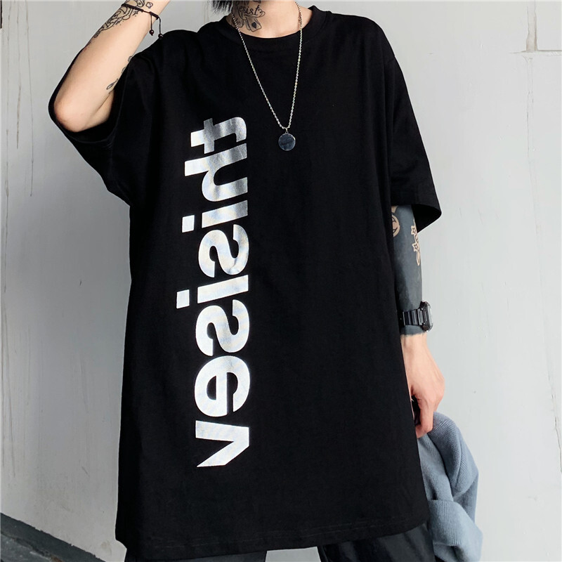 www.miniministore.online インバージョンの原宿bf風ダークブラックレトロシンプルなメタルレタープリントワイルドルーズ半袖tシャツ-アリババ かわいい サマー 夏物